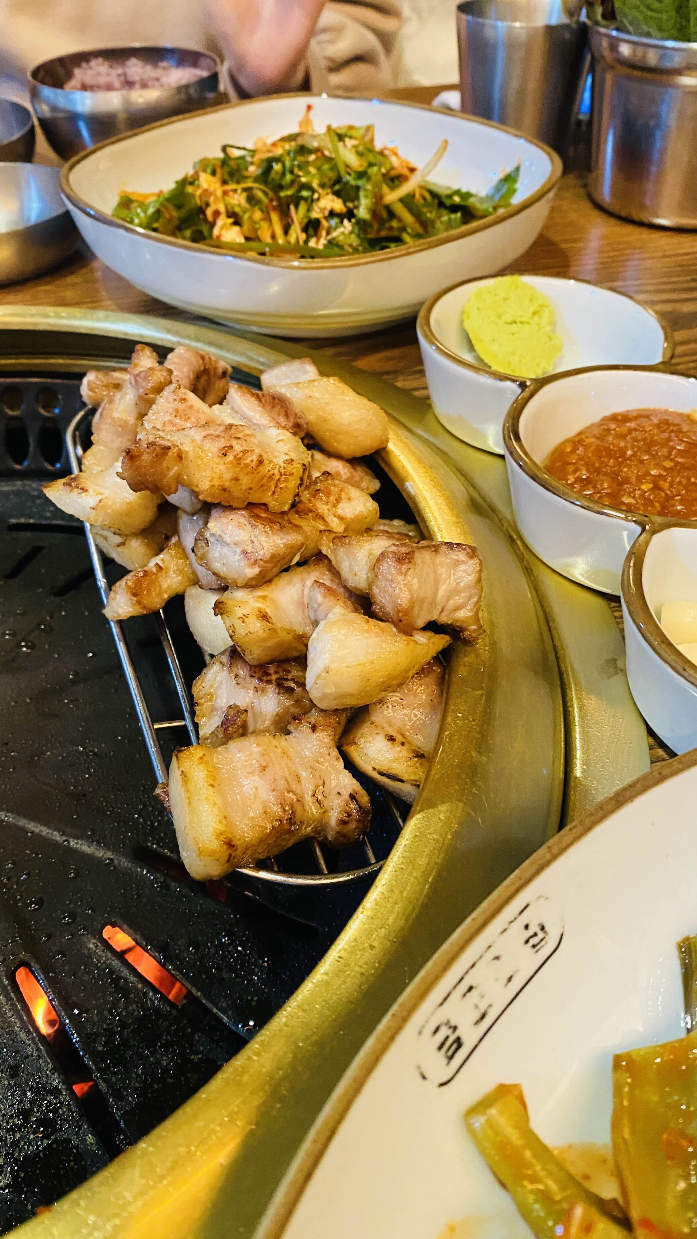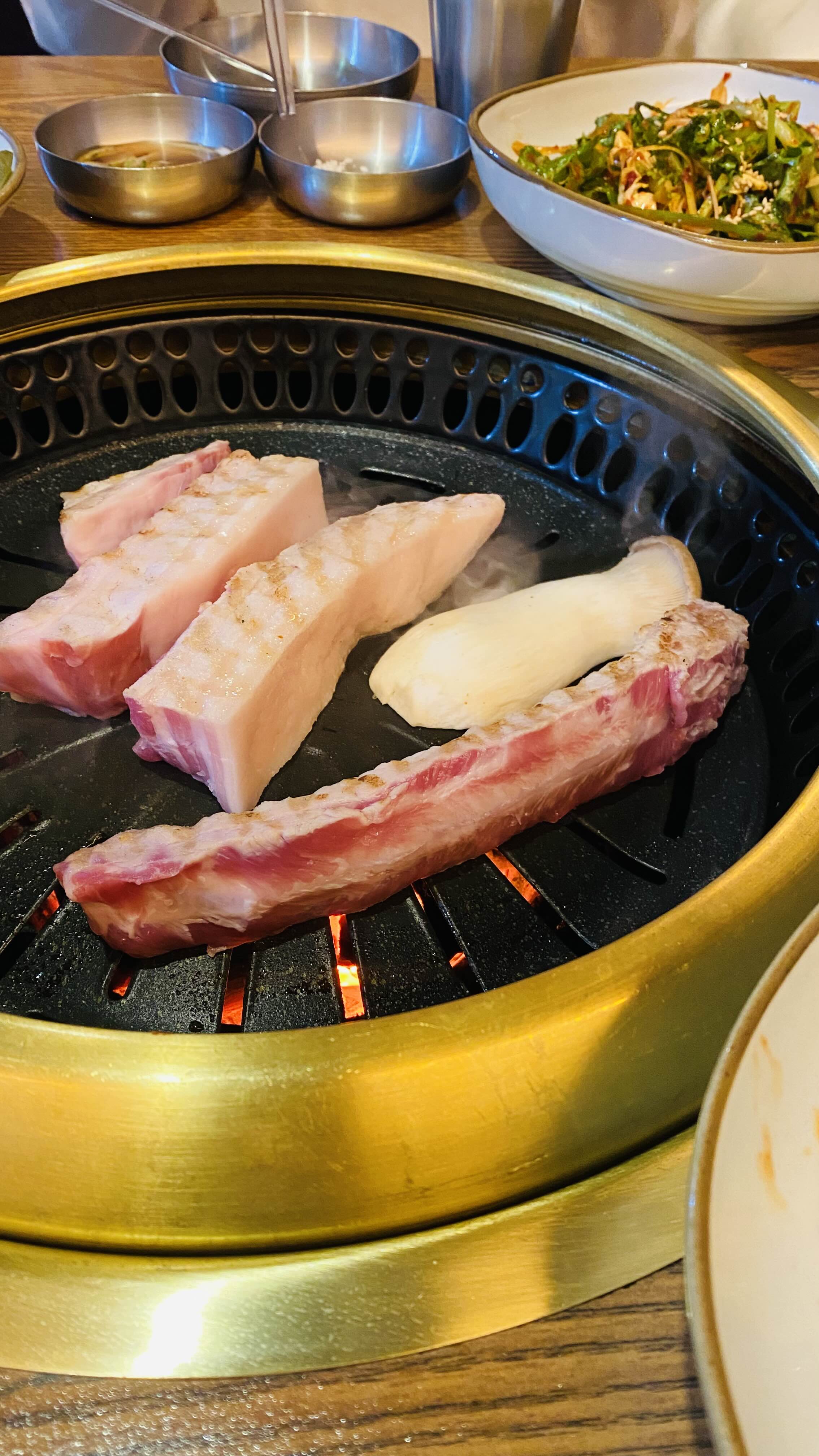 고기는 값이 나가는만큼 아주 맛있고 육즙이 제대로다. 삼겹살 대박! 고급진 맛이다.